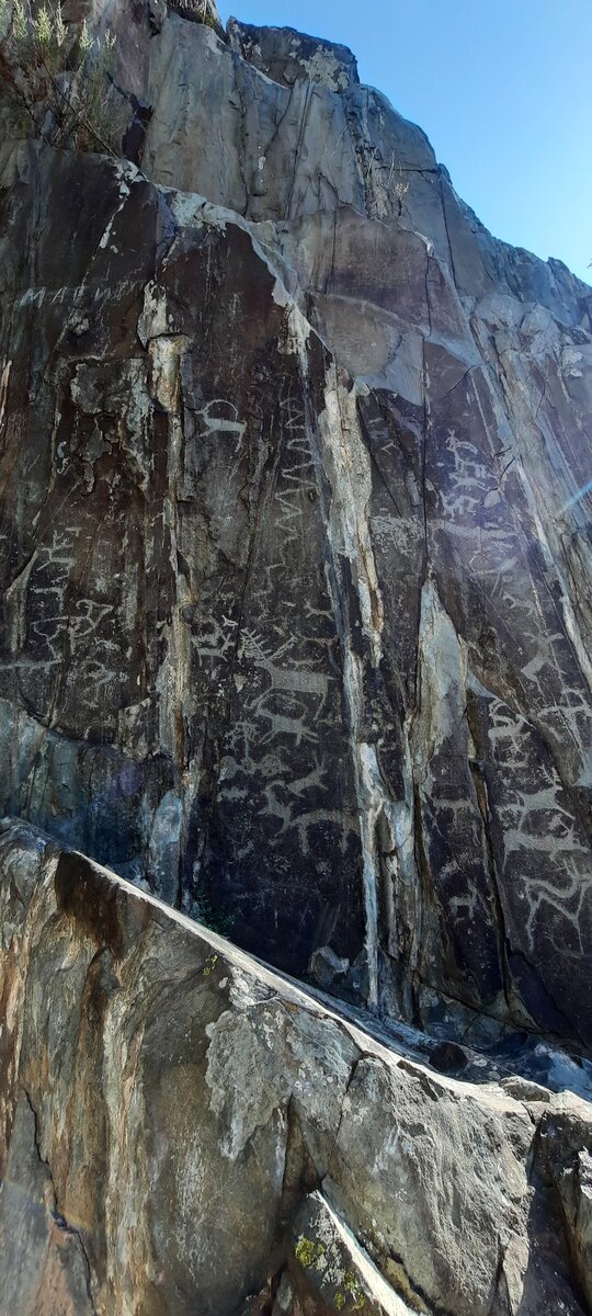Мы находимся в архелогическом комплексе Адыр - Кан. Святое место для тех, кто когда-то жил здесь. Скалы здесь украшены петроглифами - наскальными рисунками. Ученые считают, в этой долине был похоронен знатный вождь и его ближайшее окружение. Вождю установлен памятник- оленный камень, на котором выбито изображение лица и кинжал. Рядом курганы. Сейчас здесь установлена беседка. Когда мы были здесь, рядом с беседкой стоял мотоцикл и колоритно звучала алтайская музыка. Местный житель, лет 20, в национальном костюме пел и играл на народном инструменте. Его музыка разносилась по урочищу и придавала древним святыням какую-то особую значимость, создавала атмосферу. "Здесь был Вася" - надписи в таком стиле на скалах до сих пор делают желающие остаться в каменной истории мира. Но сегодня мы поговорим о других художниках и о другом творчестве, которому несколько тысяч лет. Мы посмотрим на древние наскальные рисунки: петроглифы. В мире есть несколько точек, где находят петроглифы. Одна и