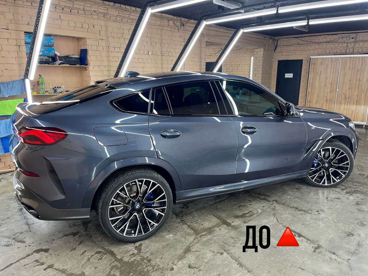 Самые жирные плюсы оклейки автомобиля именно матовой полиуретановой плёнкой: 1. Конечно же это защита от царапин, сколов и других повреждений, которые неизбежно возникнут в процессе эксплуатации. Это особенно важно для автомобилей высокого класса, таких как BMW X6, чтобы сохранить их эстетический вид и стоимость. Матовая плёнка, кстати, если вы не знали, имеет повышенную стойкость к царапинам, в отличие от глянцевой. 2. Матовое преображение всегда придаёт автомобилю индивидуальный стиль и подчеркивает его формы. А если ещё и в сочетании с антихромом — просто пушка. Да, мы здесь покрасили в чёрный глянец окантовку решётки с рёбрами, задний диффузор и саблю. Оригинальный оттенок машины сохраняется, потому что плёнка прозрачная. В случае необходимости её легко можно демонтировать, не повреждая поверхность кузова. В завершении хочу сказать, что бронирование автомобиля матовым полиуретаном является отличным решением для защиты и улучшения внешнего вида автомобиля.