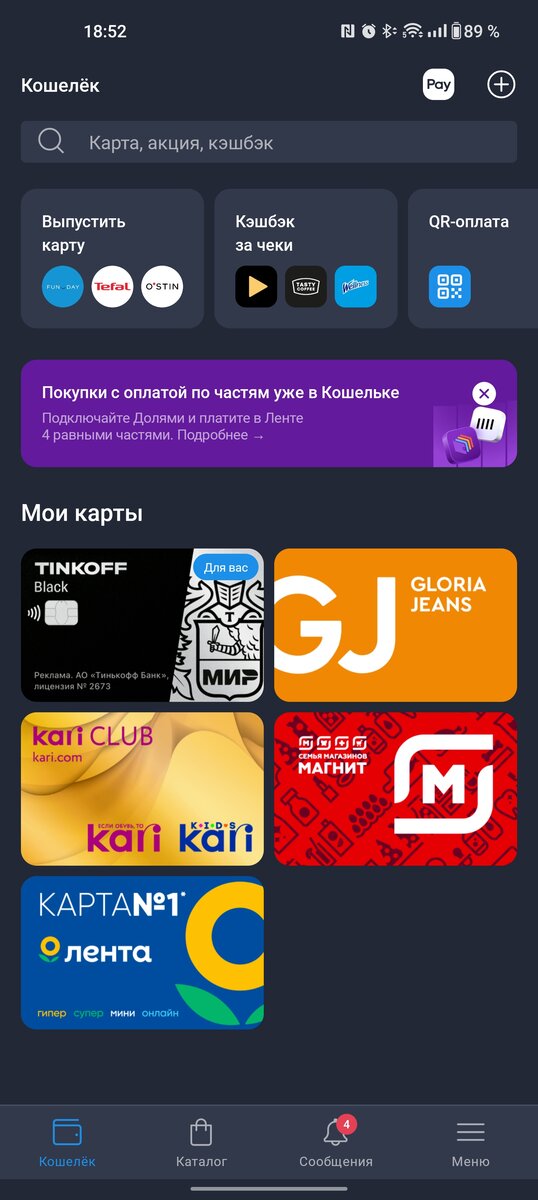 Интернет работает, а приложение Кошелёк легло отдохнуть 🙂