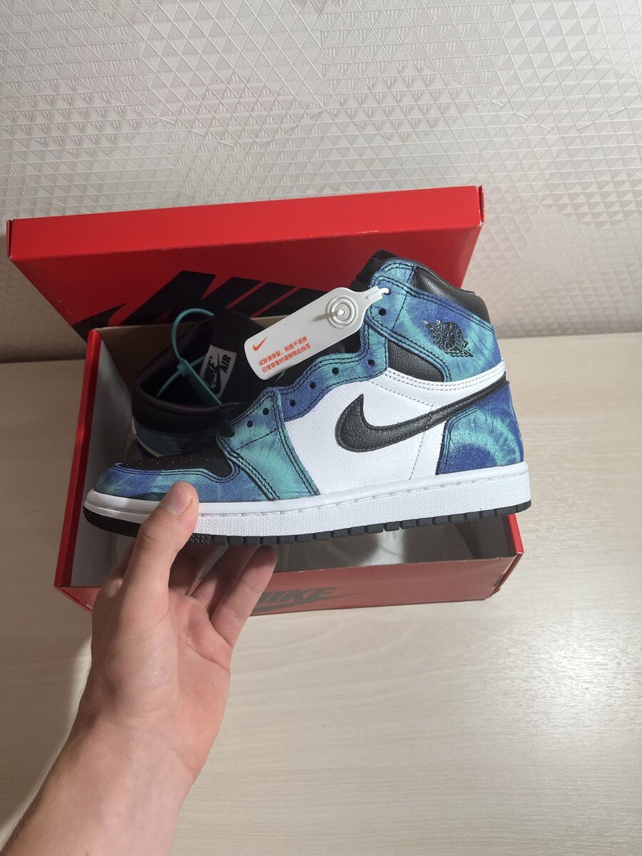 Распаковка - чек! Сегодня к нам в руки попали Air Jordan 1 High в расцветке Tie - Dye! Классика чистой воды. Модель Jordan 1, пожалуй, является самой известной среди всего ассортимента бренда Nike. С момента первого выступления всеми известного Майкла Джордана именно в этих кроссовках в 1985 году, мир кроссовок перевернулся с ног на голову. Все захотели хоть как - нибудь прикоснуться к этому виду искусства. С того момента и по сей день было выпущено более ста самых разнообразных расцветок, каждая из которых заслуживает особого внимания. Естественно с ростом популярности кроссовок, росла и их цена, но это, как говорится, уже совсем другая история... Отличительная черта данной модели - коробка! Её невозможно спутать с другими. Фирменный свуш исполнен по всей поверхности коробки, и выглядит это, ну уж очень эффектно. Обо всём вайбе этих кроссовок можно говорит, правда, бесконечно. Перейдём же к конкретной паре, которая оказалась у нас. Jordan 1 High "Tie-Dye". Вышла в июле 2020 года и зав