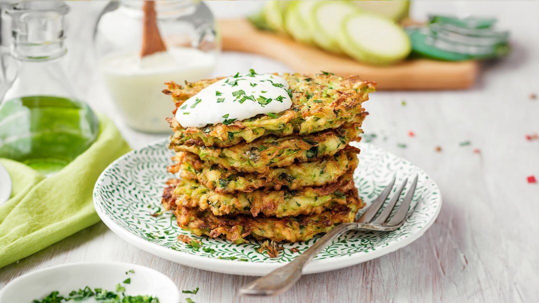 Все знают драники из картофеля, а вот драники из кабачков… настоящий деликатес! В России необычные оладьи появились благодаря белорусскому автору Яну Шитлеру. В 1830 году он выпустил кулинарную книгу «Кухар добра навучаны» («Хорошо обученный повар»), для которой позаимствовал рецепт картофельных драников у немцев. Яну так понравился вкус блюда, что он придумал несколько своих вариаций, среди которых были и драники из кабачков! Сегодня мы готовим именно этот рецепт. Прежде чем мы начнем, пара советов. Если вы выбрали молодые кабачки, чистить их совсем не обязательно! С мягкой кожицей получится даже вкуснее. И семена, кстати, тоже можно оставить. Кабачок — водянистый овощ, а вода делает драники влажными и невкусными. Чтобы этого избежать, натирайте кабачки на средней или крупной терке и обязательно отожмите массу, чтобы стек лишний сок. Кроме того, добавляйте соль в уже готовое тесто прямо перед жаркой. Так тесто для оладий не расплывется при приготовлении, а у готового блюда будет аппет