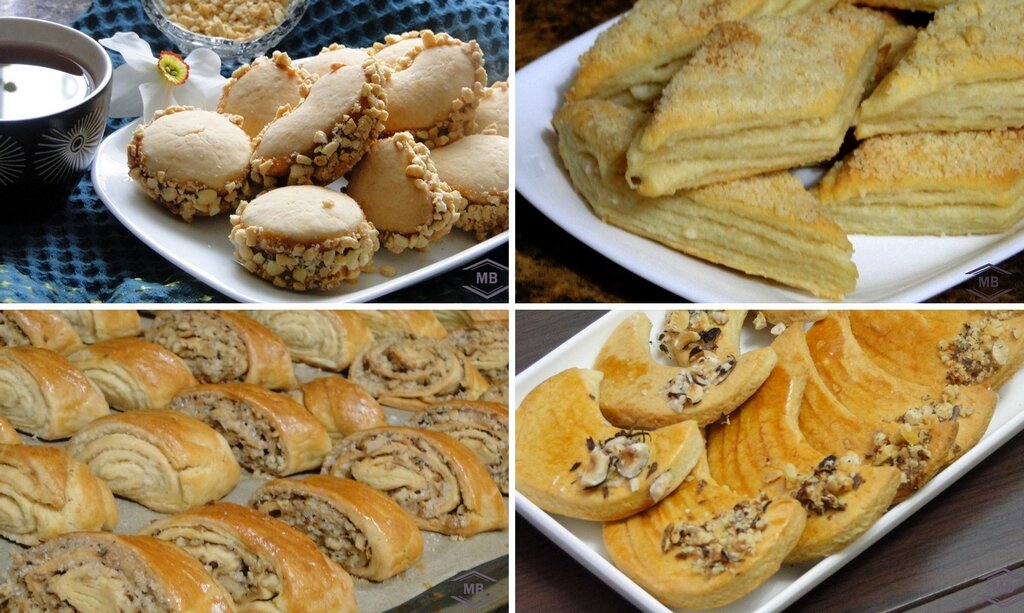 Красивые и невероятно вкусные печеньки для любого повода! Проверенные рецепты печенья для всей семьи. Их не стыдно подать и гостям на праздничное застолье! Печенье “Альфахорес” Ингредиенты: Для теста: 250-300 г муки, 150 г маргарина, 100 г сахара, 100 г крахмала, 10 г разрыхлителя, 1 яйцо, 1 ст.л. коньяка – по желанию, щепотка соли. Для начинки: варёная сгущёнка, арахис – для украшения. Процесс приготовления: Соединяем маргарин комнатной температуры с сахаром, солью и коньяком. Добавляем яйцо и муку с разрыхлителем. Замешиваем тесто. Перекладываем в пищевой пакет и отправляем в холодильник на 1 час. Тонко раскатываем тесто и стаканом или формочками вырезаем заготовки. Аккуратно перекладываем заготовки печенья на противень с пергаментом. Выпекаем при 180 градусах 15 минут. Смазываем обе части печенья сгущёнкой и скрепляем. Бока печенья промазываем сгущёнкой и посыпаем измельчёнными орехами. Слоёное печенье на кефире Ингредиенты: 450 г муки, 200 г сливочного масла, 200-250 г кефира, 10 г