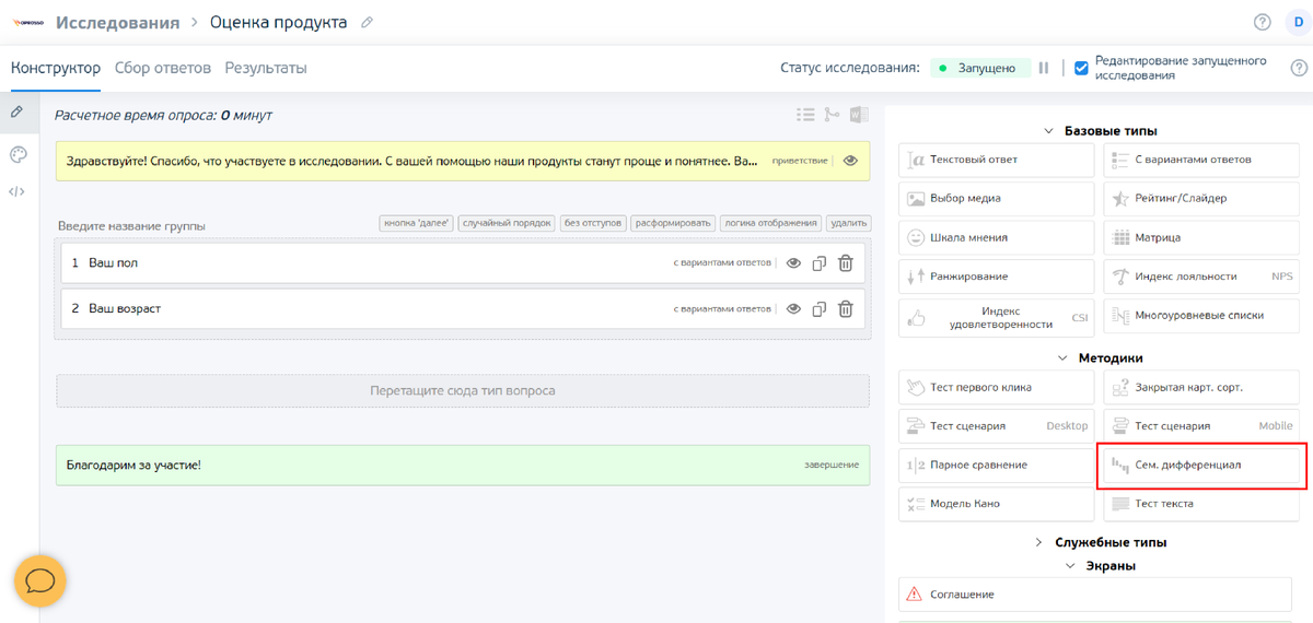 Ниже рассмотрим, как пошагово настроить все этапы семантического дифференциала на примере нашей системы: