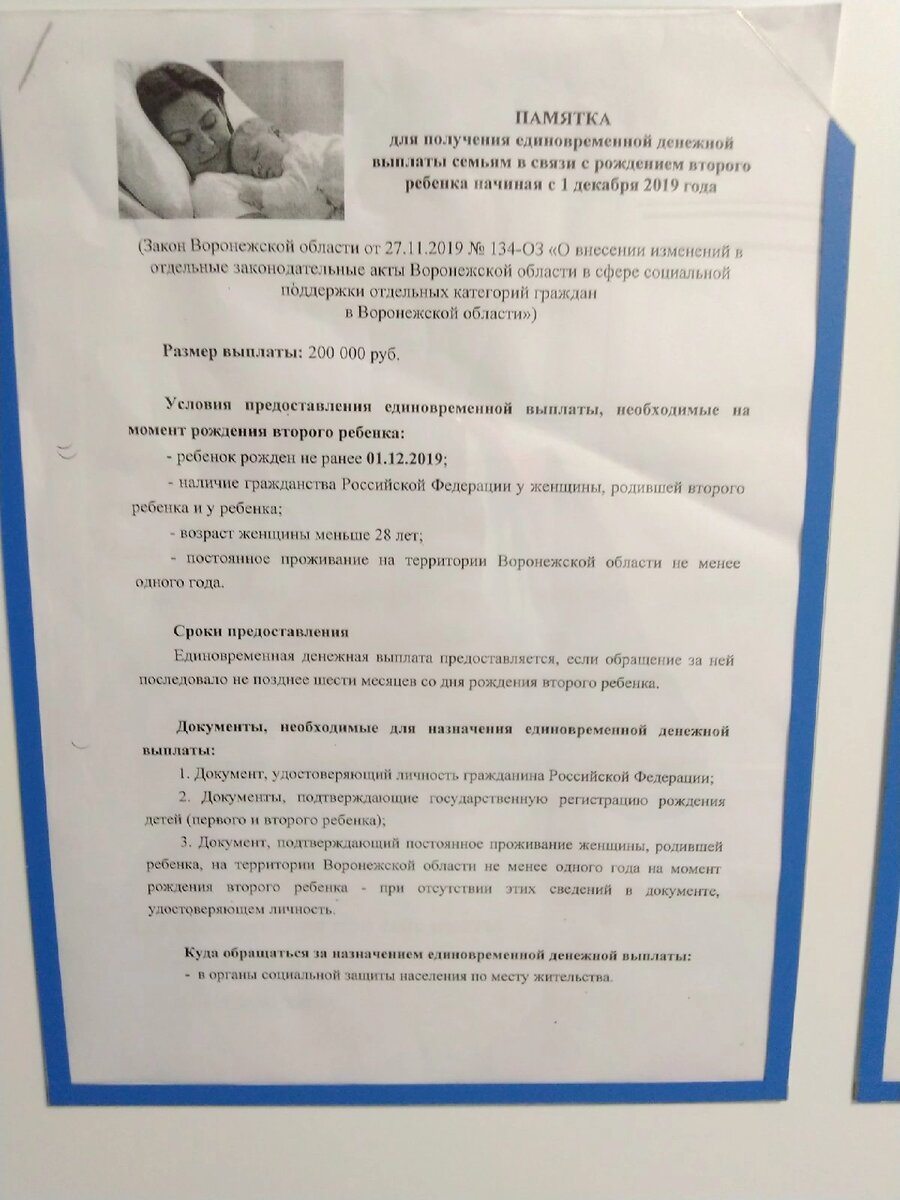 К сожалению, не все знают о данной выплате. И многие просто так теряют 200 тысяч рублей. А сумма для молодой семьи, где есть дети, не копеечная. Выплата положена молодым мамам,родившим 2 ребёнка до 28 лет. Обращаться за такой выплатой следует в социальную защиту в течение полугода после рождения малыша. Если обратиться позже - ничего не получите. Я проживаю в Воронежской области,поэтому делюсь актуальной памяткой своего региона. Плюс данной выплаты,что в отличие от материнского капитала деньги приходят на карту и отчёт об их использовании не требуется. Вы можете потратить на любые цели. На покупку игрушек, на погашение кредита, положить деньги на счёт малышу и т.д. А вы получали такую помощь от государства? Знали о ней? Сколько у вас детей? Делитесь в комментариях. Кому информация была полезна - ставьте лайк и подписывайтесь на "Кораблик детства", чтобы не пропустить другую важную информацию.