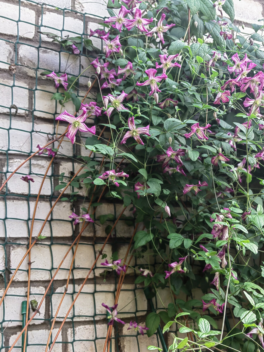 Добрый ночи!😍🤗 Совсем недавно я вам рассказывала о клематисе,который у меня серьезно приболел,готова была к самым радикальным мерам. Но планировала понаблюдать за ним еще пару дней. Ну что ж ,прошло пять дней. Не могу с уверенностью сказать,что самое страшное позади,боюсь сглазить... Но видимых причин для беспокойства пока нет,враг притих. Вот ,смотрите,больше пока нет новых почерневших листьев. Вот такое получилось трио :нежно-розовый мелкоцветковый "Минуэт",белоснежный клематис жгучий и яркий "Виль де Лион". Милое и нежное клематисовое облачко. "Виль де Лион "здесь,конечно, на главных ролях.Кто бы спорил... Покажу вам поближе "Минуэт",он берет своей масштабностью. В основном все цветочки четырехлепестковые,но попадаются изредко и с пятью лепестками. Обратите внимание ,что в" ногах"Виль де Лион "и "Минуэт"не цветут. По этой причине "ноги"нужно прикрывать.У меня высажены четыре сорта лилейников ,которые своим роскошным цветением у подножия клематисов будут оттягивать взгляд на себ