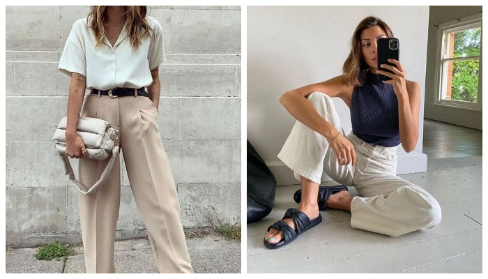 В данной статье мы рассмотрим как и с чем можно сочетать брюки, чтобы получить полноценный, потрясающий, летний образ. В тёплое время года хочется носить всё лёгкое и дышащее, поэтому рубашка нараспашку станет идеальным дополнением к брюкам. Свободный образ дополните майкой на одно плечо и удобной обувью. Это могут быть любимые босоножки, которые открывают практически всю стопу. Более сдержанный образ получится, если застегнуть все пуговицы и заправить край рубашки за пояс. Любимые ботинки на шнуровке подчеркнут ваш стиль. Блузки и рубашки с подвёрнутым рукавом всегда остаются в моде. К светло-бежевым брюкам подойдёт белая рубашка, белые босоножки, а также соломенная сумочка с кожаными коричневыми ручками. Белые брюки, расширяющиеся к низу, достигают пола и скрывают обувь. Они делают вашу походку плывущей по воздуху. Дополните белизну брюк рубашкой в полоску кофейного цвета. Сделайте акцент в виде сумки цвета шоколада. Тонкий ремешок, подчеркивающий вашу талию сочетается с цветом обуви