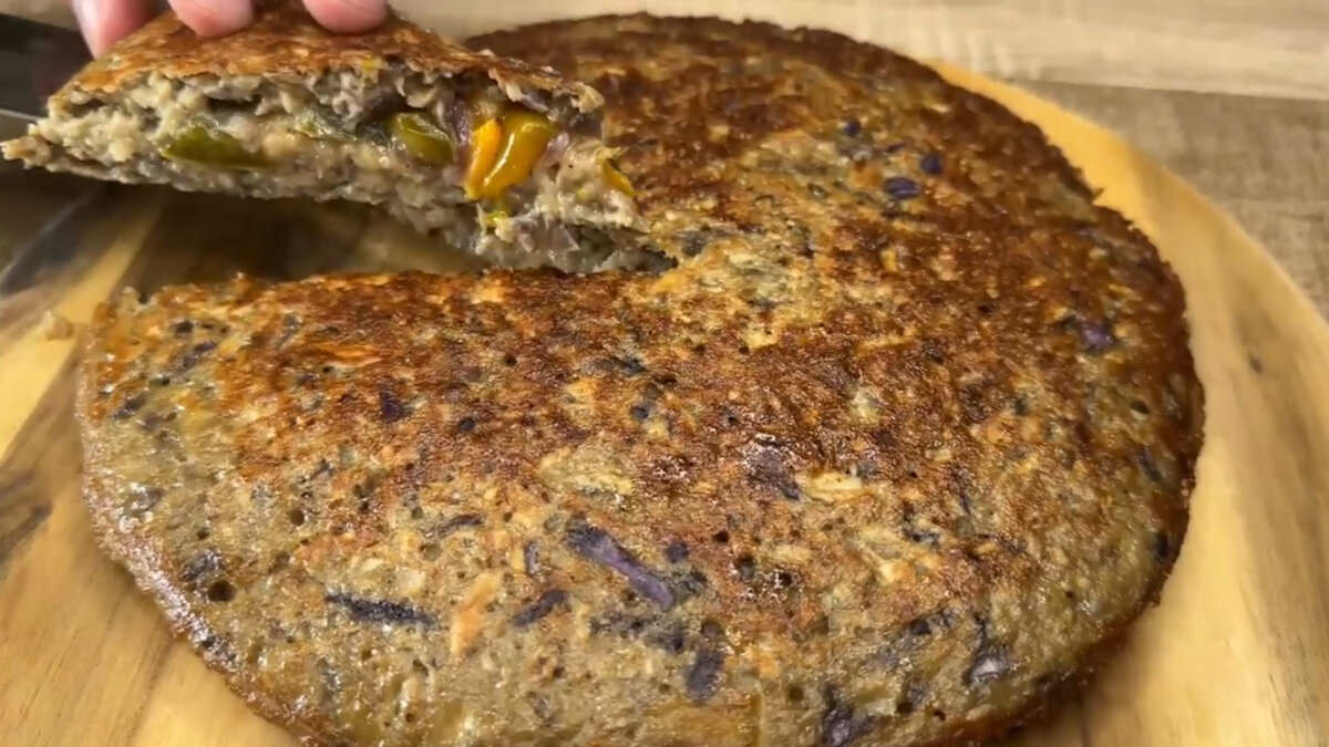 Следите за весом - ваш лёгкий ужин. Простой рецепт омлета на сковороде из баклажанов Всем привет! Сегодня я представляю вам вкусный, простой рецепт! Жареный омлет на сковороде из тёртых баклажанов, начинённый перцем и луком, — это блюдо, идеально подходит для лёгкого ужина. Достаточно нескольких простых ингредиентов и небольшого количества времени, чтобы приготовить здоровую еду, полную овощей и питательных веществ. Натёртые баклажаны подсаливаем, перчим черным перцем по вкусу и оставляем в дуршлаге отстаиваться около 10 минут. Обжариваем на разогретой сковородке с растительным маслом лук и болгарский перец, солим и перчим по вкусу. Тушим овощи под крышкой на среднем огне 15 минут периодически помешивая. Отжимаем тёртые баклажаны от лишнего сока. После добавляем к ним яйца и перемешиваем. Готовую овощную смесь снимаем с огня и выкладываем на тарелку. В баклажаны добавляем 3 столовые ложки белой муки, соль и перец по вкусу и замешиваем тесто. Натираем на тёрке сыр (сорт и количество