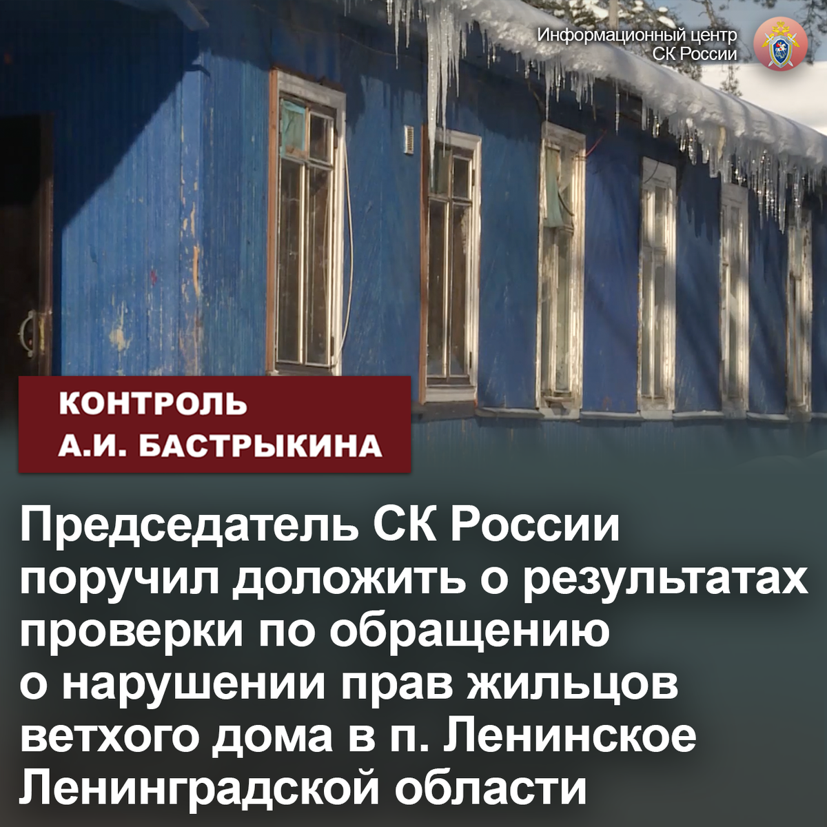 К главе СК России А.И. Бастрыкину в комментариях в аккаунте его Приемной «ВКонтакте» обратился житель поселка Ленинское Ленинградской области. Более 30 лет назад рабочих местного совхоза временно заселили в деревянное общежитие барачного типа, пообещав вскоре предоставить благоустроенное жилье. Однако в дальнейшем ферма ликвидирована, а 16 семей, в том числе с малолетними детьми, до настоящего времени вынуждены проживать в непригодных условиях: фундамент, стены и пол здания деформированы, перекрытия сгнили. В доме аварийная электропроводка, вместе с тем из-за отсутствия центрального отопления люди вынуждены осуществлять обогрев квартир с помощью электроприборов, рискуя своей безопасностью. Неоднократные обращения в администрацию результатов не принесли, мер по расселению граждан не предпринимается.
