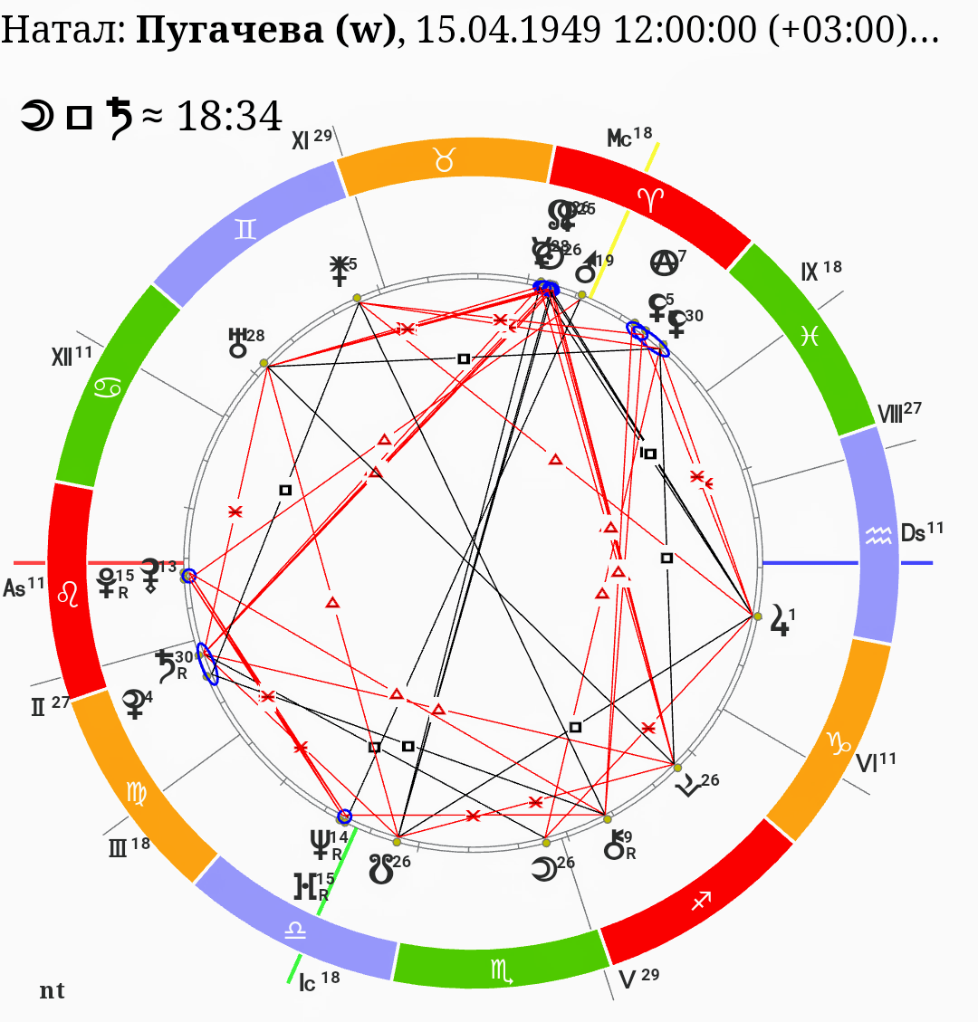 Всех их объединяет влияние звёзды Шеат в натальной карте. Шеат- звезда истеричек, утопленников, самоубийц и артистов. Пронесемся по натальным картам известных людей и посмотрим, как в из картах отыгралась Шеат. Надеваем шапочку из фольги - поехали. Шеат расположена в последнем градусе знака Рыбы, а это символический 12 дом, которым правит Нептун, и в котором живёт наше подсознание. Специализируется на творчестве, медицине, инфекции, затуманивании разума. Это звезда максимальных интенсивных психоэмоциональных переживаний. Обращается к глубинным пластам психики. Конструктивно эта звезда может проигрываться только у натур творческих. 1. Пугачева Алла Борисовна В последних градусах Рыб у Аллы Борисовны располагается весьма неприятная Лилит в соединении с Эридой. Быть ей не примадонной, а городской сумасшедшей, если бы не 6 светил в знаке огня, которые определили и ее бешеную работоспособность и целеустремленность. 2. Киркоров Филипп Бедросович У Киркорова Шеат почти не проявлена, по