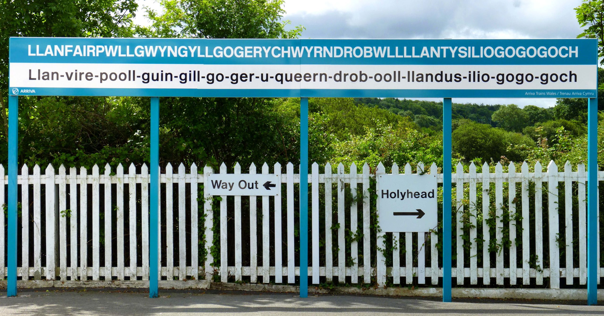 Llanfairpwllgwyngyll-gogerychwyrndrobwlllllandysiliogogogoch. Вы видели только бессмысленную цепочку букв, не так ли? Так получилось, что это название города в Уэльсе. Это самое длинное название любого города в мире. Llanfairpwllgwyngyll-gogerychwyrndrobwlllllandysiliogogogoch было создано в 1860-х годах с целью привлечения туристов и популяризации этого небольшого города на острове Англси в Уэльсе. Оно переводится как "Церковь Святой Мэри в лугах белых орехов рядом с бурными водами, церковь Святого Тисийло, церковь Святого Мариан-Ер-Паргор, благочестивое деятельное присутствие близ привалов Келидонии".