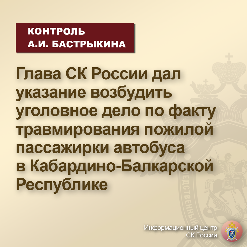 #СледственныйКомитет #СКРоссии #СКР #ИЦСКР #Информационныйцентр #АлександрБастрыкин #ПредседательСКР #КонтрольПредседателяСКР #КонтрольЭфира #КБР