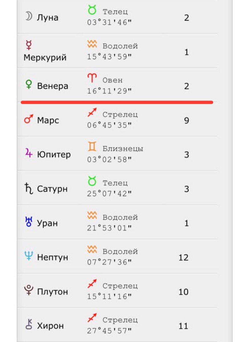 Венера, как планета любви, обязательно ответит на этот вопрос! Для начала нужно вспомнить или же рассчитать вашу натальную карту. Для тех, кто всё помнит и знает - хорошо, для тех, кто не помнит или же не рассчитывал, прикрепляю ссылку на пост, который тебе обязательно в этом поможет. Смотрим в табличку под НК, ищем знак зодиака, в котором расположена Венера. На примере всё отметила для наглядности. У меня в Овне! 🌙Венера в Овне: тебе нравятся энергичные, сильные и целеустремлённые люди, которые готовы проявлять инициативу. Тебе важно не тащить всё на себе, поэтому такие партнёры - идеальный вариант.
