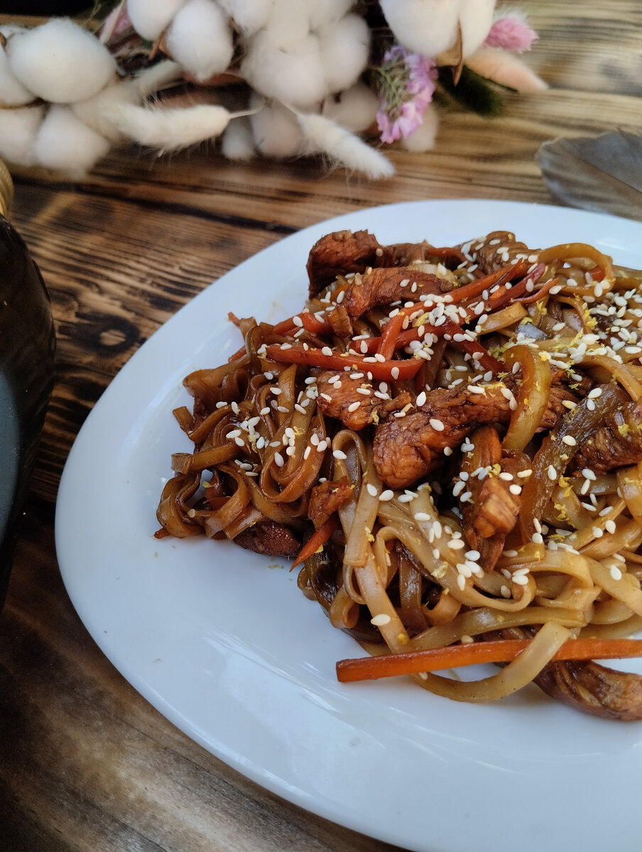 Лапша с уткой и овощами прекрасно разнообразила наш рацион.
