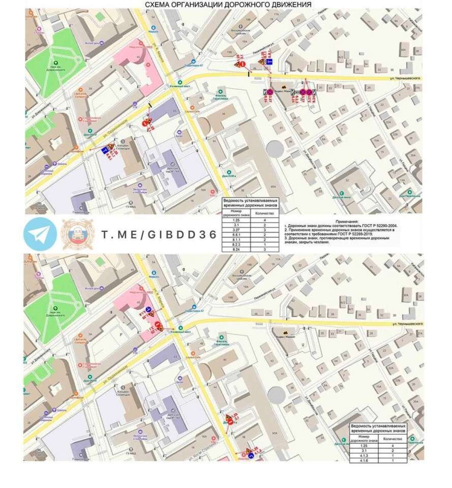 На двух улицах в центре Воронежа 3 августа временно закроют движение