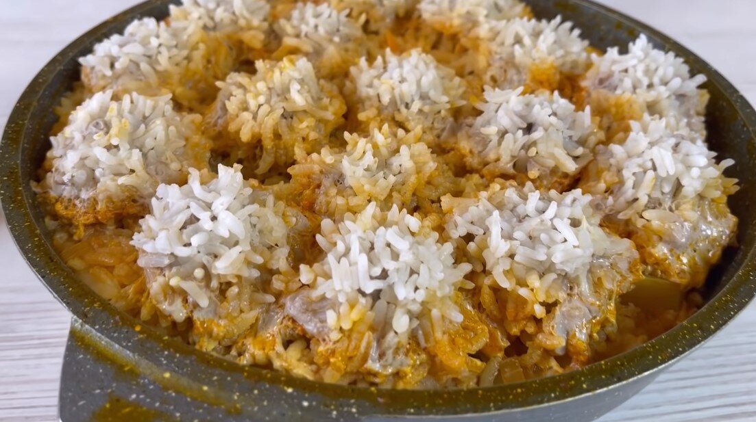 Этот рецепт — палочка-выручалочка для хозяйки. Готовится просто, быстро, а главное, в одной сковороде. Гарнир дополнительно варить не нужно, т.к. в блюде есть картофель и рис. Мясные рафаэлки получаются нежными, сочными и готовить их можно из любого мяса. Посмотрите, как необычно они выглядят. Мои дети их просто обожают! Давайте приготовим вместе: Рис промываем, заливаем кипятком и оставляем постоять на столе, пока подготавливаем все остальное. В фарш (у меня свинина + говядина) добавляем соль, яйцо и специи по вашему вкусу. Я добавляют сушеный чеснок, свежемолотые кориандр и смесь перцев, сушеный базилик. Все тщательно перемешиваем и отбиваем фарш прямо в миске, чтобы вышел лишний воздух. Так готовые изделия будут лучше держать форму. Лук нарезаем крупными кубиками. Морковь трем на крупной терке или режем соломкой. Но мне больше нравится натирать на терке для моркови по-корейски и затем немного измельчить ножом. Картофель нарезаем достаточно крупно. В сковороде разогреваем растительно