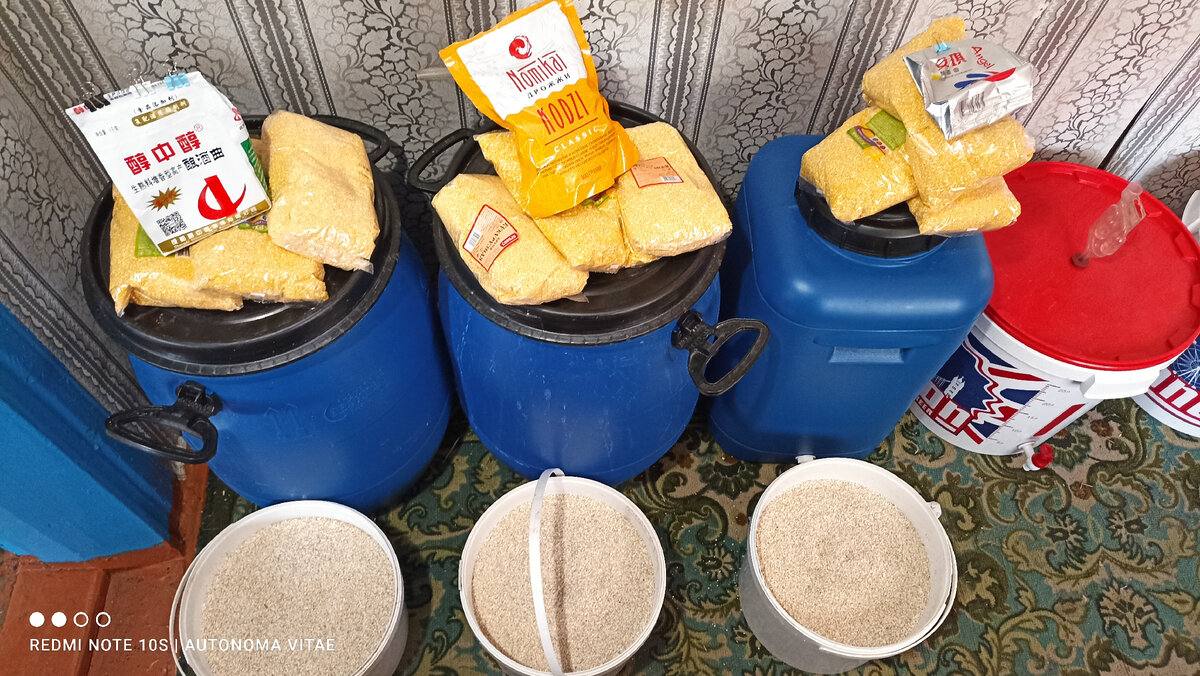 Здравствуйте, друзья! Всегда был интерес какие же кодзи лучше, Ангел, Меллоу или Номикай. Решил провести сравнение и поставил параллельно три одинаковых по сырью браги. Цена кстати на все три кодзи практически одинаковая. В каждую ёмкость помещаю по 6 кг. ячки, купленной на кормовом рынке и 2,4 кг. кукурузной крупы, купил в ближайшем сетевом магазине. ГМ чуть больше 1/4, вода 30С. Абсолютно одинаковые условия. При брожении ни одна особо не пенилась, по запаху очень близко. Самый лучший результат показали Ангелы, уже через 17 дней брожение прекратилось. Запах браги назвал бы даже приятным, кваском отдаёт. Перегнал в режиме потстилл, с одним медным пыжом в диоптре. Итого получилось 10,2 литра 29% спирта сырца. Гнал прямо до ноля. Итого 2,950 АС. На Меллоу и Номикай брожение продлилось на 4 дня больше. Запах браг немного разный, но в целом очень похож, тоже отдают кваском. Первым перегнал брагу на Номикай, на следующий день брагу на Меллоу. Гнал также до ноля, итог Номикай по АС очень ряд