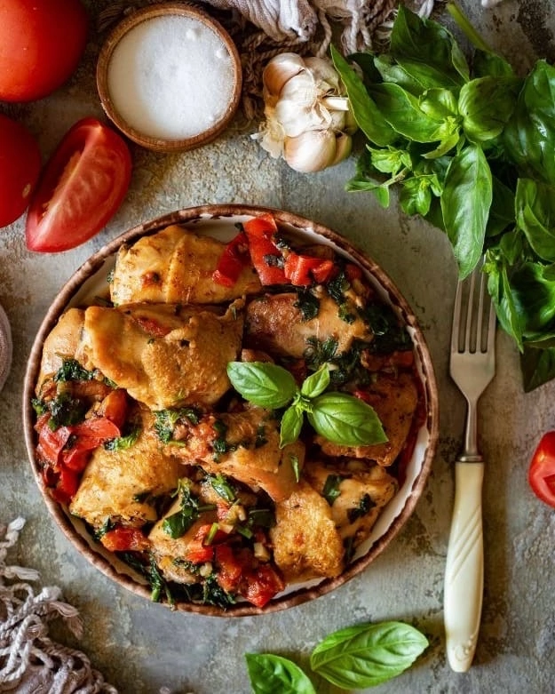 Курица по-адыгейски Ингредиенты (для банки объемом 1 л): курица – 800 г; лук – 50 г; мука – 30 г; чеснок – 10 г; соль – 10 г; красный перец молотый – 6 г. Для этого рецепта нам нужна целая курица, очищенная от внутренностей. В процессе дальнейшего разбора отделяем мясо от костей и отдельно – жир. По этому рецепту можно приготовить и утку по-адыгейски, соблюдая такие же пропорции. А можно даже смешать оба вида мяса. Приготовление: Курицу нарезаем кусочками весом примерно 50 грамм. Лук очищаем, нарезаем полукольцами и обжариваем на растительном масле. Готовим заправку по следующей пропорции: жир из костей – 17%; лук обжаренный – 20%; перец красный – 3%; мука – 15%; чеснок (измельченный) – 5%; соль – 5%; вода – 35%. Выкладываем мясо в банки и заливаем соусом. Банки закрываем и помещаем в автоклав. Консервируем при 110 градусах 40 минут.