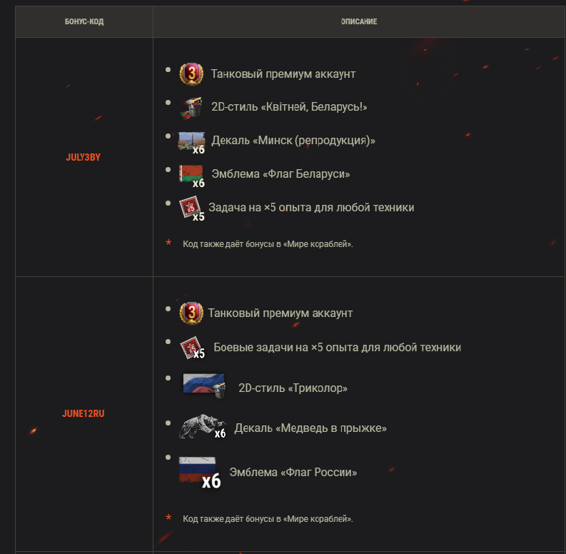 Промокоды, бонус- и инвайт-коды для «Мира танков»