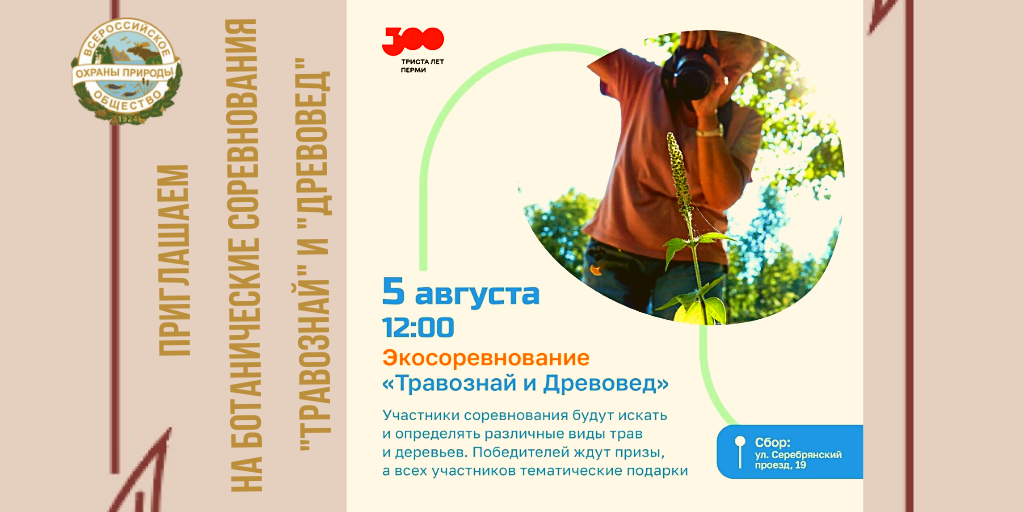 Ботанические соревнования «Травознай» и «Древовед», организатором которых выступает Пермское краевое отделение Всероссийского общества охраны природы, хорошо известны жителям региона. Не первый год пермяки под руководством опытных наставников соревнуются, демонстрируя знания о растительном мире - побеждает та команда, которая за минимальное время определит на участке наибольшее количество растений. 5 августа защитники природы проведут очередное эколого-просветительское мероприятие, участниками которого станут новички, желающие открыть для себя богатство растительного мира. Всех, кому интересен проект, ждут к 12.00 час в Серебрянском парке в долине реки Данилиха. Задания для новичков, как обещают организаторы, будут несложными. Определять растения можно будет как в команде, так и индивидуально. «Участникам необходимо будет с помощью определителя узнать/вспомнить, как выглядят растения, найти их на территории и сфотографировать. Дополнительные баллы принесут скорость выполнения задания и