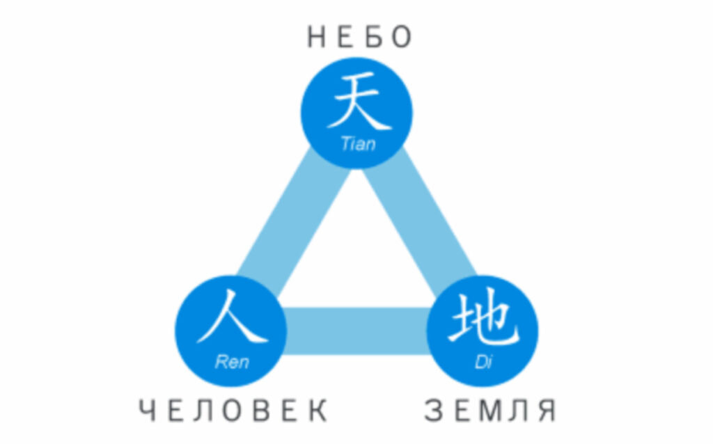 #символика Отличается от троицы тем, что последняя является тремя-в-одном, в то время как члены триад отличны друг от друга, например: Солнце-Луна-Венера в астрологии; Огонь-Свет-Эфир в зороастризме; даосская Великая триада Небо-Человек-Земля; волшебное, человеческое и природное. При этом человек - посредник между небесным и земным. Триада, подобно троице, часто символизируется треугольником, а иногда - трезубцем. В даосизме черепаха, одно из четырех духовно одаренных существ, символизирует триаду, где верхний панцирь символизирует свод Небес, нижний - воды и землю, а находящееся в центре тело - человека. В триадах рождения, жизни и смерти три богини часто изображаются как девочка, невеста и старуха, например, Персефона, Деметра и Геката. Они символизируют также циклическую природу вселенной.