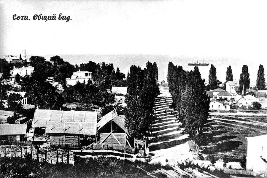 В начале века, когда курорт только зарождался, Сочи был небольшим заштатным городком, тихим и немноголюдным – изредка мелькнет одинокий прохожий или проедет конный экипаж. Судить об этом можно хотя бы по старому снимку, на котором – одна из центральных улиц, Пластунская, нынешняя Войкова… «Пластунская улица - единственная в городе, вымощенная булыжником, была обсажена рядами высоченных тополей. По нагорной ее стороне было построено пять – шесть одноэтажных каменных зданий, где располагалось несколько мануфактурных и продовольственных магазинов, а также «номера для приезжающих», далеко не первого разряда и не безупречной репутации. По другую сторону улицы расстилались почти на всем протяжении пустыри, через которые вели протоптанные в траве тропки к стоящим в отдалении небольшим домикам…» - так, по описанию сочинского старожила К.А. Гордона, выглядела эта улица в начале века. Участок, запечатленный на снимке, иногда называли Тополевой аллеей. Со временем здесь появилось еще несколько ма
