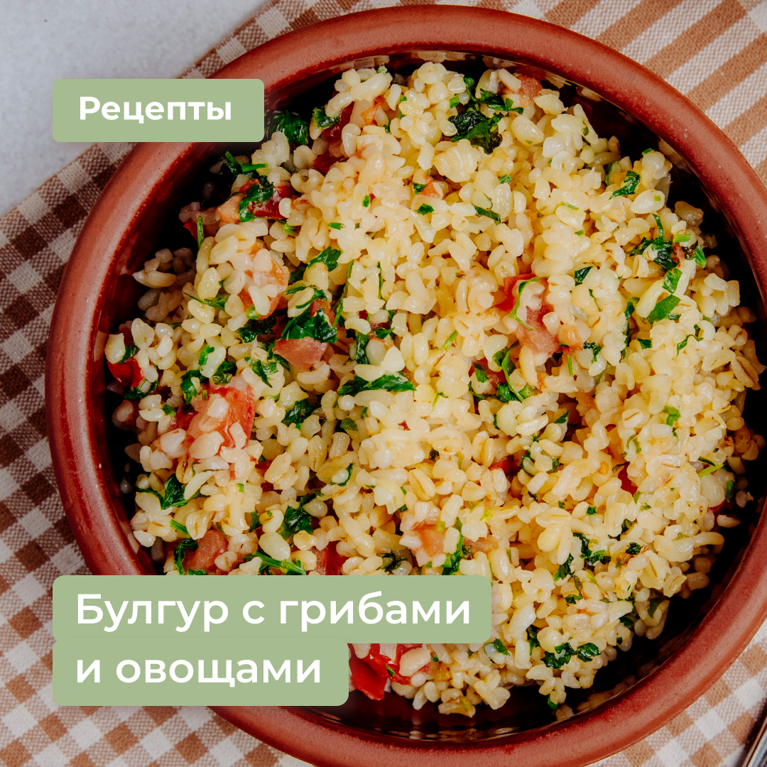 Часто слышу от пациентов фразу: "я не люблю крупы". И это нормально, источниками цельного зерна в рационе могут служить и другие продукты, но всегда рекомендую хотя попробовать их полюбить. Один из вариантов - интересные гарниры. Как раз таким рецептом и хотелось бы сегодня с вами поделиться. Булгур с грибами и овощами 👉🏻 Ингредиенты: • Булгур 0.5 стакана • Вода 1 стакан • Лук репчатый 0.5 шт. • Шампиньоны 100 гр • Морковь 0.5 шт. • Растительное масло 1-2 ст.л • Соль, зелень, специи по вкусу 👉🏻Способ приготовления: ▪️Лук мелко шинкуем, а морковь натираем на терке. ▪️Обжариваем овощи 3-4 минуты на небольшом огне. ▪️Шампиньоны нарезаем на ломтики. Добавляем их в сковороду к луку и моркови. ▪️Обжариваем все вместе около 10 минут под крышкой. ▪️Всыпаем в сковороду булгур. Добавляем соль и специи. ▪️Перемешайте все ингредиенты, затем заливаем в сковороду горячую воду и готовим булгур под крышкой минут 15-20. За это время булгур увеличится в размере и впитает в себя всю воду. ▪️Желательн