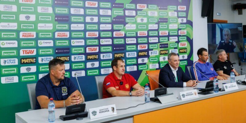 В пресс-конференции приняли участие Президент букмекерской компании «Лига Ставок» Юрий Красовский, а также главные тренеры, чьи команды будут бороться на Федеральной территории «Сириус» за главный трофей: Роман Ротенберг (СКА), Дмитрий Кокорев («Сочи»), Николай Воеводин (сборная России), Леонид Тамбиев («Адмирал»). По видеосвязи с журналистами федеральных и местных СМИ пообщался главный тренер «Авангарда» Михаил Кравец — омская команда прилетит на Черноморское побережье 3 августа. Пресс-конференция в подобном расширенном формате прошла в рамках турнира впервые.