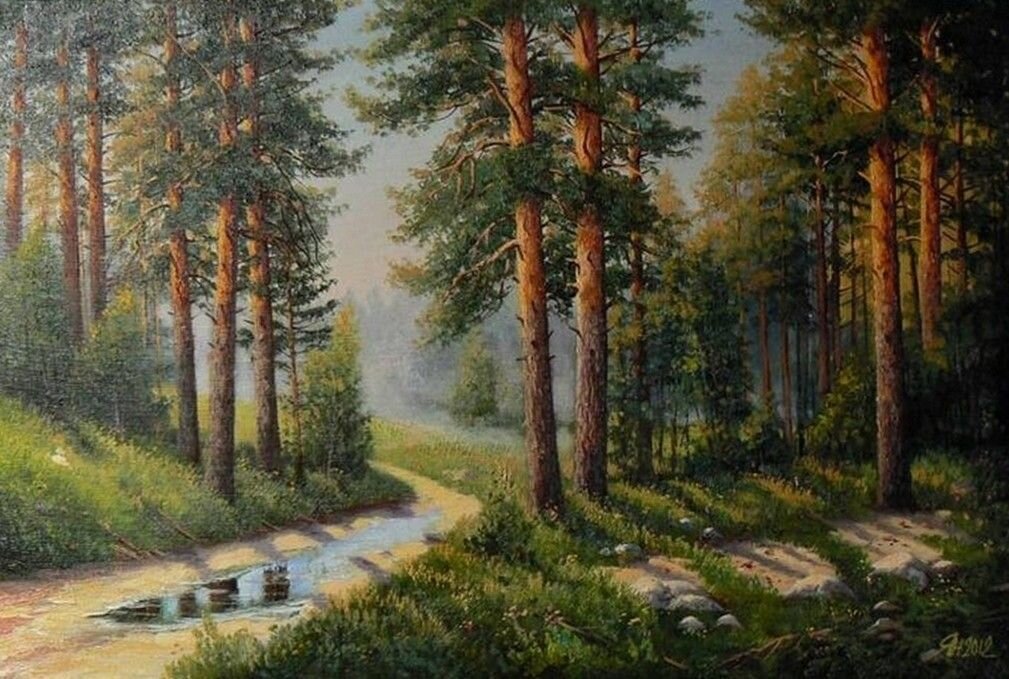Вот, вроде, и покончено с уборкой, но внимание привлекла картина на стене. «Нужно протереть, пыль, зараза, любит такие доступные места.»- Эля встала на пуфик и потянулась тряпкой в руке к картине. Но замерла… Именно этот лес ей сегодня снился во сне! «Быть такого не может! Вот эта развилка, вот натоптанная тропка, а вот та, по которой я пошла» … В голове медленно стали всплывать воспоминания ночного видения. Вот тут и вспомнилось и падение, и голоса, и удар головой обо что-то твердое …