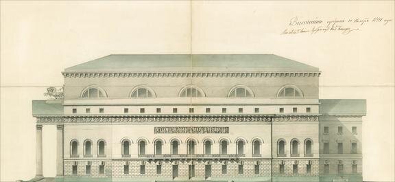 В 1819 году был объявлен конкурс на проект нового здания театра. Победил проект профессора Академии художеств Андрея Михайлова, признанный, однако, слишком дорогостоящим. Московский губернатор князь Дмитрий Голицын приказал архитектору Осипу Бове исправить его, что тот и сделал, причём значительно улучшив.