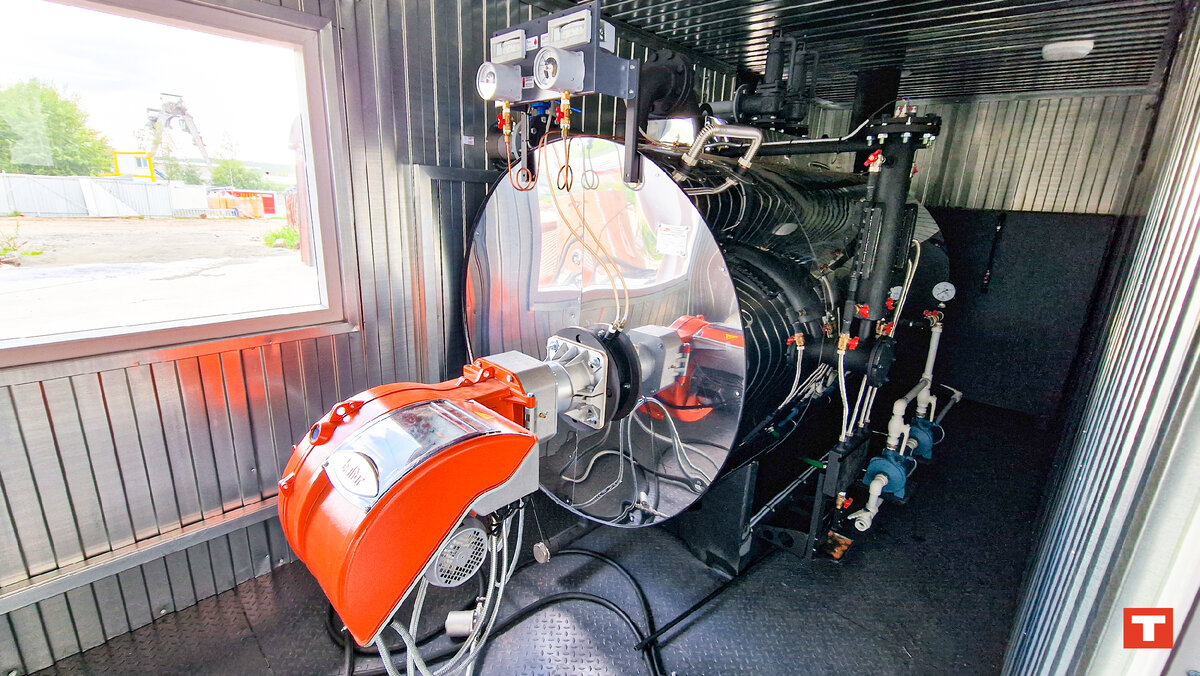 Установка, производит пар при помощи парообразователя, перерабатывая дизельное или газовое топливо.