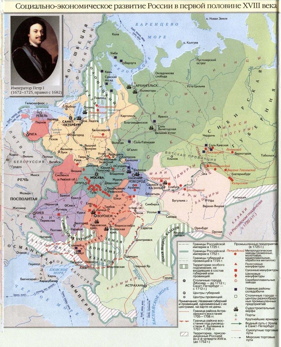 В промышленности продолжалось строительство новых мануфактур и заводов. При этом менялась география их размещения и быстро увеличивался объем продукции. К примеру, выплавка чугуна за первую четверть столетия выросла на 650 тыс. пудов, а за вторую четверть — на 1,2 млн. Высокими темпами развивалась легкая промышленность. К 1753 г. эта отрасль насчитывала 155 предприятий, в том числе 16 суконных, 29 шелковых и 51 парусно- полотняное. Значительно расширила свои границы металлургическая промышленность Урала. Новые заводы появились в Башкирии и на Южном Урале. Возникли мануфактуры в Ярославле, Серпухове, Иркутске, Астрахани, Тамбове, Иванове и других городах и селах страны 222.