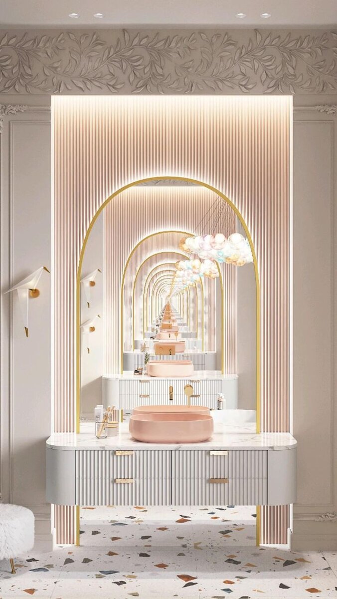 Арт-деко - это классическое дизайнерское направление, которое приносит роскошь и изысканность в интерьер ванной комнаты. Оно восхищает своей элегантностью и гармоничным сочетанием современных и классических элементов. Для создания ванной комнаты в стиле Арт-деко, важно учесть несколько ключевых элементов: 1. Мебель: Выбирайте мебель с гладкими поверхностями и геометрическими формами. Типичные для Арт-деко мебельные элементы - шкафы с зеркальными фасадами, комоды с острыми линиями и изящные тумбочки. 2. Ванна: В ванной комнате в стиле Арт-деко подходит фристенд ванна на ножках или с геометрическим дизайном. Используйте красивые ванные крашенные изнутри, чтобы добавить шарма. 3. Смесители: Для ванной комнаты в стиле Арт-деко подходят смесители с геометрическими формами и металлической отделкой, такие как хром или латунь. 4. Аксессуары: Расставьте аксессуары, такие как хрустальные чаши, декоративные вазы или золотые элементы, чтобы подчеркнуть роскошь и элегантность. 5. Плитка: Используйт