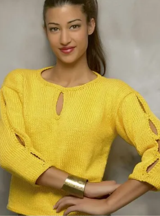 Желтый цвет. 7 летних пуловеров спицами. Акцент на детали