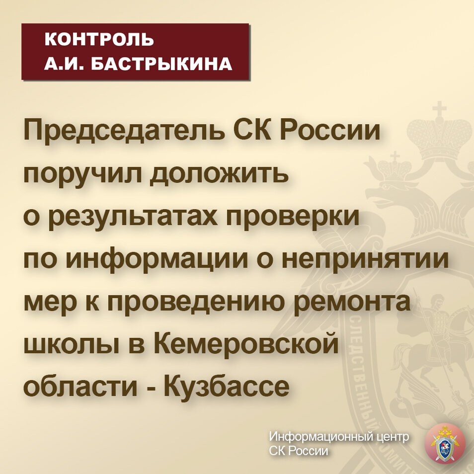 Председатель СК России поручил доложить о результатах проверки по информации о непринятии мер к проведению ремонта школы в Кемеровской области - Кузбассе