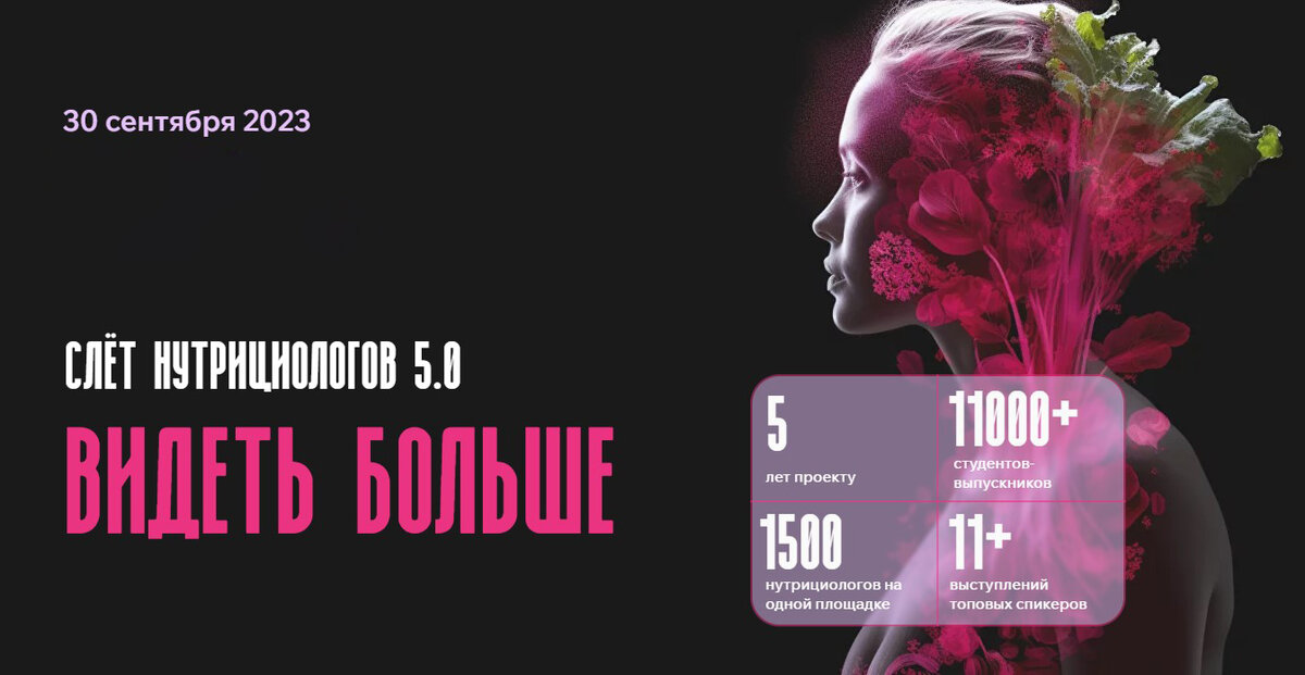 • И многое другое! ДАТА: 30 сентября 2023 / ВРЕМЯ: 11:00 - 19:00 КУПИТЬ БИЛЕТ НА СЛЁТ НУТРИЦИОЛОВ 2023