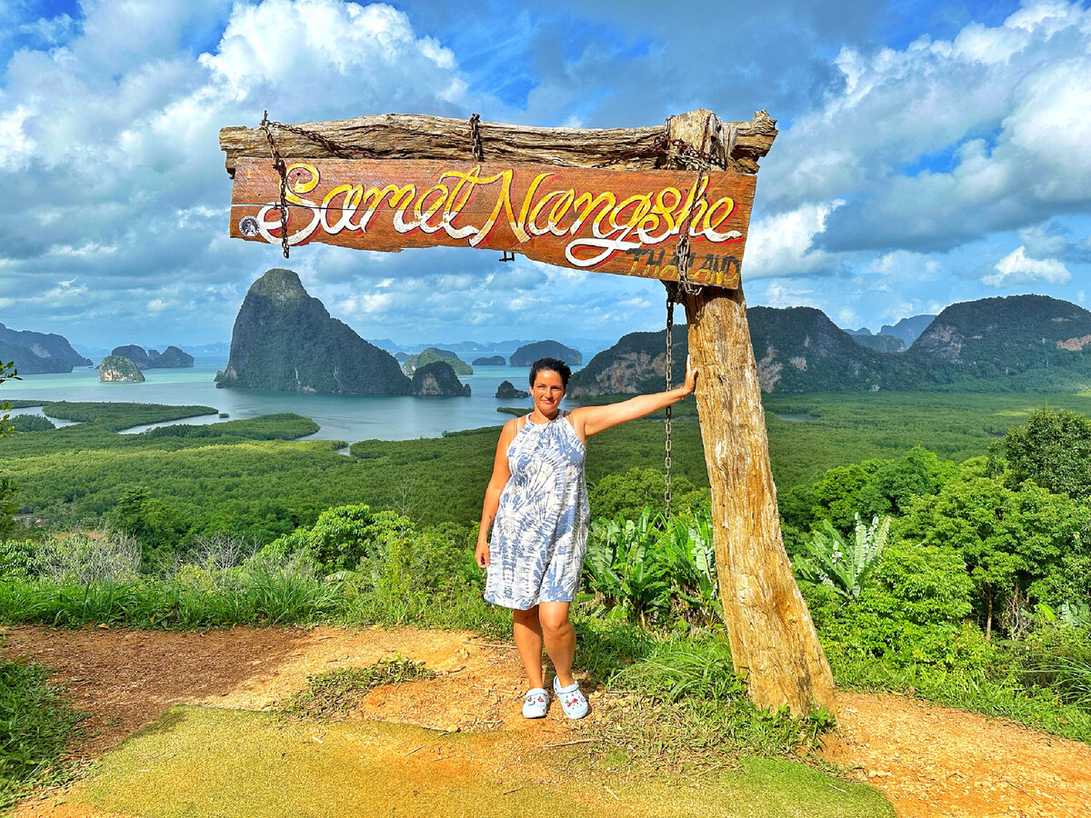 Напишу сегодня вам про одно красивейшее место, сколько стоит туда вход и как мы добирались. А еще сделаю обзор отеля, в котором остались на ночь. Мы поехали на автомобиле в провинцию Паханг-Нга, она считается национальным парком Таиланда, вторым по величине. С Пхукета выехали на обеденный сон Алины, чтобы она поспала, ехать 1,5 часа. Samet Nangshe Viewpoint (Самет Нангше) — смотровая площадка с живописными видами на залив Пхан Гна. Вход стоит 30 бат за подъем пешком и 90 бат с человека за то, чтобы тебя подняли на Джипе. Подъем в крутую гору, но на джипе ехать не долго, меньше 10 минут. Такой типо тук-тука автомобиль, на подъем заполняется полностью. На спуск сколько наберет. Держаться нужно очень крепко, ибо сильно трясет. На смотровой площадке очень много локаций для фото и видео, но вид со всех них примерно одинаковый и очень красивый. Таких пейзажей я еще не видела. Алине очень понравились качели, наверное, потому что на Пхукете мало детских площадок, да мы и не ходим на них. Прос