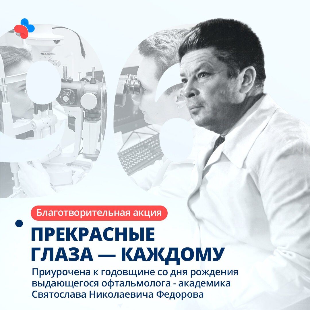 По данным Всемирной организации здравоохранения, во всем мире более 1 миллиарда человек страдают от офтальмологических заболеваний. Нарушение зрения отрицательно влияет на восприятие действительности, доставляет дискомфорт, ограничивает возможности и в целом снижает качество жизни. Однако 80% случаев офтальмологических заболеваний можно предотвратить. Чтобы внести свой вклад в сохранение зрения, Центр микрохирургии глаза YourMed присоединяется к международной благотворительной акции «Прекрасные глаза — каждому». Приглашаем вас с 7 по 13 августа 2023 года в нашу клинику на бесплатную экспресс-диагностику зрения и комплексную диагностику нарушений зрения при катаракте. Немного истории Каждый год 8 августа в разных странах мира проводится акция «Прекрасные глаза — каждому». Дата выбрана не случайно — именно в этот день в 1927 году родился великий российский офтальмолог Святослав Николаевич Федоров. Святослав Федоров — профессор, академик Российской академии медицинских наук и Российской