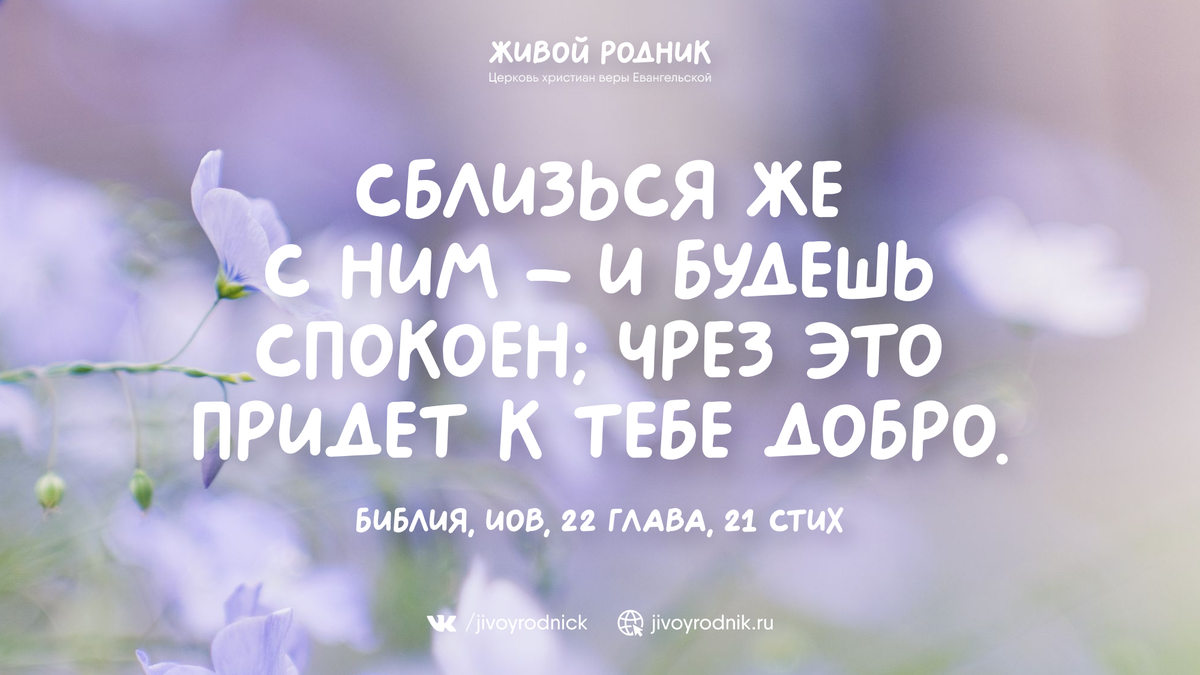 Сблизься же с Ним – и будешь спокоен; чрез это придет к тебе добро. Библия, Иов, 22 глава, 21 стих