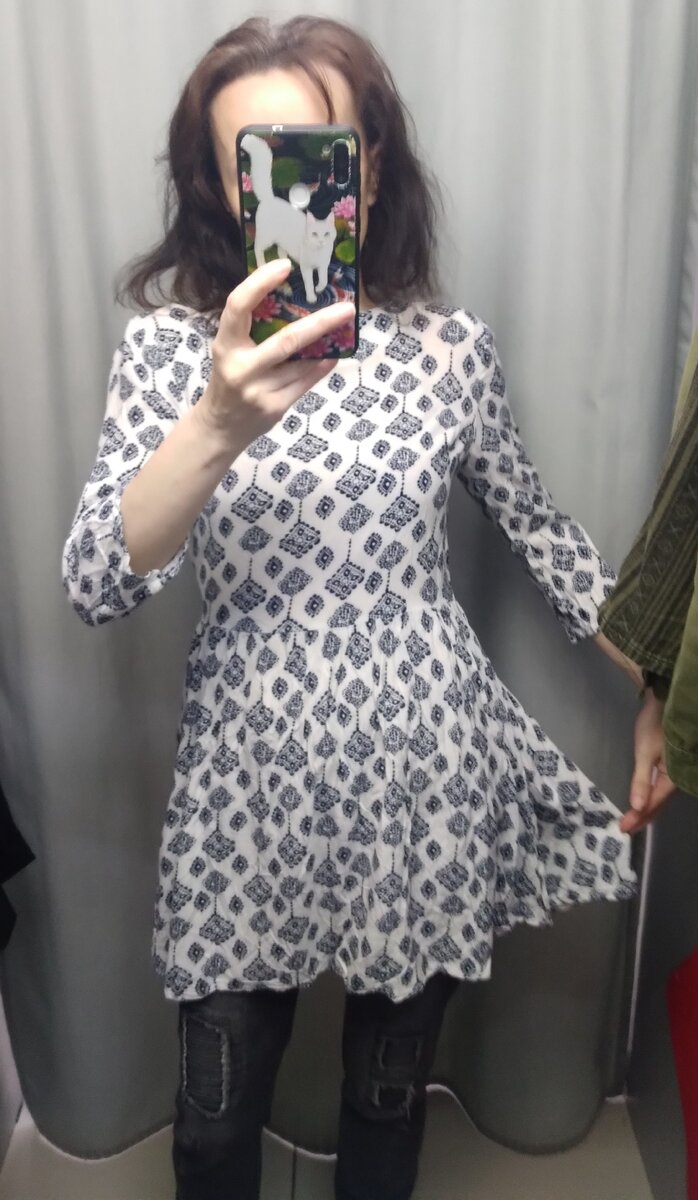 Здравствуйте. Обзор из Столичного гардероба. Цена 2500 за кг. Платье из вискозы. Я почти всегда примеряю платья из вискозы, если платье не подойдёт на выход, то может сгодиться для дома. Застежка на спинке, что не очень удобно( и коротковато. Я с чистой совестью ношу платья выше коленей, выше на ладонь - моя идеальная длина, выше или ниже уже не то. Тут очень короткое, так что просто померила. Платье-трапеция из смесовой ткани. Такое платье идет женщинам с абсолютно любым типом фигуры. Теперь меня засмущал размер клетки. А не слишком ли она большая? Хотя от чего-то подобного с классической чёрной и белой клеткой я не отказалась бы. Прямое платье с длинным рукавом. Нет даже вытачек, но зато есть на груди капелька. Цвет более насыщенный, чем на фото, у всех своя цветопередача, но зеленый фон ярче. Смесовая ткань. Свитшот из хлопка. Посмотрела сколько этот бренд стоит у нас в магазинах, получилось, что от 10 тыс. Kaotiko был создан в 1999 году, это испанский бренд. Черные вещи не получа