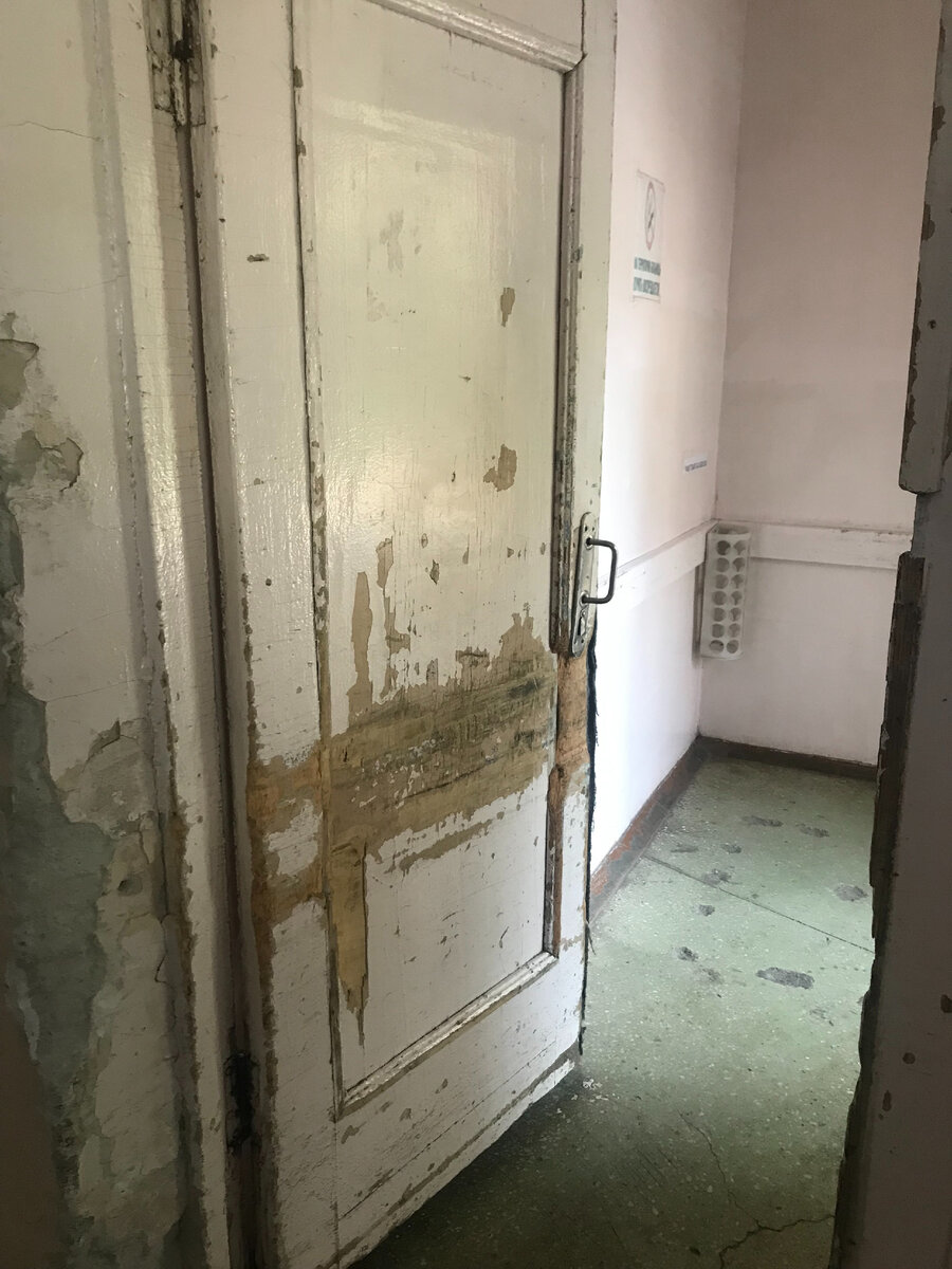 Это дверь в приемный покой Бердской городской больницы. Пришлось на днях столкнуться с этой неприглядностью. Человеку стало плохо, скорую вызывать на дачу дольше, чем самой отвезти. Приехала в больницу, которая ближе к дачам, а там нет кардиолога, только травматолог принимает. Пришлось брать руль в руки, ставить ноги на педали и ехать в другое отделение. И вот там я такую дверь увидела. За дверью был советский союз, но достаточно постаревший. Помощь оказали, кардиограмму сделали, лекарства дали, отпустили минут через сорок. Я эти сорок минут ходила туда-сюда и философствовала. Эту больницу капиталили. Но вот на дверь финансов не хватили видимо. Или просто это не фасад, приемный покой за основным зданием, в глубине. Самое неприглядное помещение. Хотя для меня наличие такой двери является показателем отсутствия хозяина. Уж что-что, но найти деньги на входную дверь можно было. А почему на контрасте. За такой дверью не ждешь ничего хорошего. А за ней есть хорошее - люди, выполняющие свою