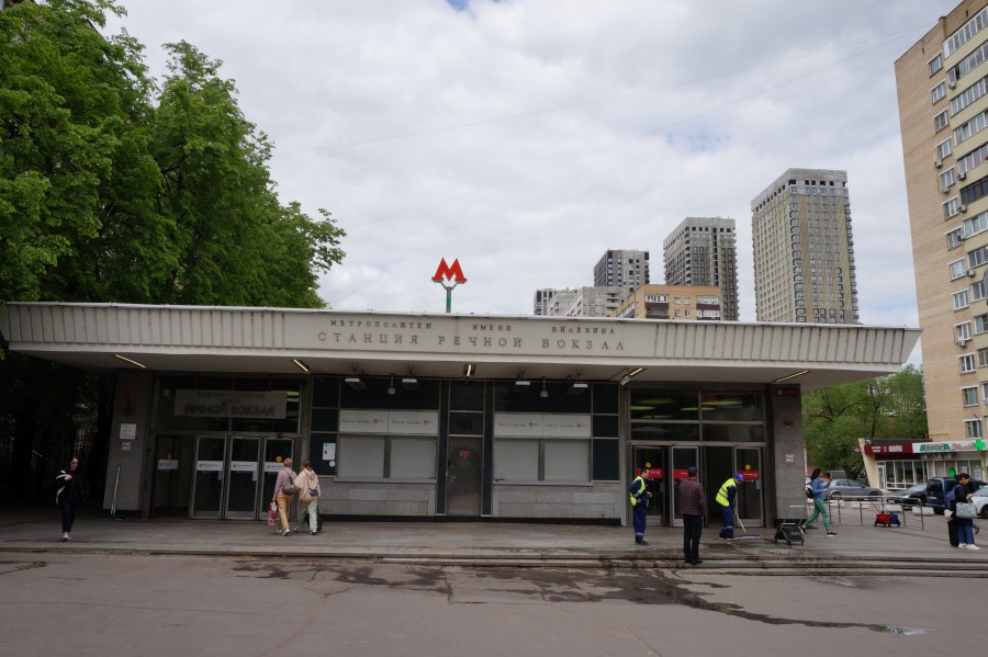 Ну а вот уже и станция «Речной вокзал». Очевидно, что если пассажир попадает сюда, то дальше он поедет в сторону Шереметьево. Можно было конечно выбрать маршрутку, но решили не мучать детей и всё же сократить эксперимент в плане общественного транспорта потому выбор пал на такси.
