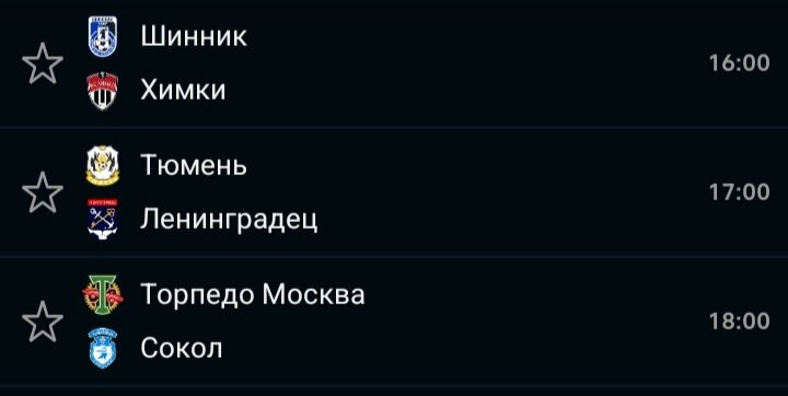 Шинник - Химки Обе команды находятся в нижней части турнирной таблицы. На прошлой неделе обе команды одержали победы. Между собой, последние 2 игры, Шинник и Химки сыграли 0:1 и 0:0. Командам нужно набирать очки и пробиваться вперёд. Прогноз: ТБ2 Тюмень - Ленинградец Между командами не было ниразу личных встреч. Обе команды дебютируют в ФНЛ. Команды будут прощупывать друг друга. Открытой игры ждать не стоит. Прогноз: ТМ2,5 Торпедо Москва - Сокол Сокол дебютирует в ФНЛ. Делает это он достаточно неплохо - победа в прошлых двух матчах. Торпедо на протяжении месяца не проигрывает. Кураж Сокола и опыт Торпедо подарят открытую игру. Прогноз: Обе Забьют