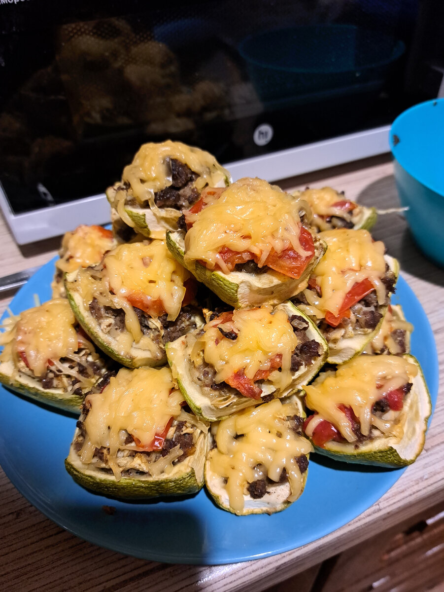 Каждая женщина/девушка каждый день сталкивается с вопросом - Ну что же сегодня приготовить? В моей семье 4 мужчин. Один большой и 3 по меньше,но они все хотят каждый раз есть что-то новое. И каждый день встаёт этот вопрос - ЧЕМ ЖЕ СЕГОДНЯ ПОРАДОВАТЬ СВОИХ МУЖЧИН?! Хочу поделиться одним рецептом, который одинаково понравиться всем🤩 Да и на "если что" можно и гостям, блядо выглядит очень аппетитно. И так нам понадобится: - фарш 500гр - лук 2 - морковь 1-2 - кобачки/ баклажаны - сыр российский Первый этап это необходимо обжарить фарш, лук, морковь с любимыми специями вместе до полносной готовности. При необходимости, даже я бы сказала желательно,добавить при обжарке немного воды, где-то пол стакана или чуть меньше, в зависимости от мяса, для сочности. Второй этап это подготовка кабачков/баклажан. Необходимо помыть и отрезать все лишние. Затем 2 раза разрезать пополам. Столовой ложкой вырезать мякоть кабачков оставив бортики. Если это баклажан,то после этого ещё надо замочить в холод