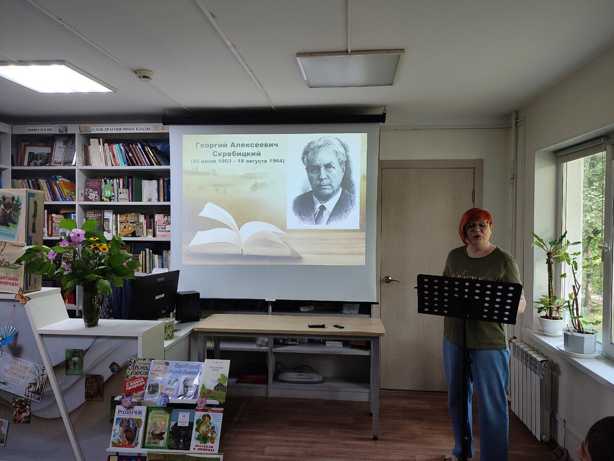 2 августа в Библиотеке семейного чтения состоялось литературное путешествие «От первых проталин до первой грозы», посвященное 120-летию со дня рождения писателя-натуралиста Георгия Алексеевича Скребицкого. Его рассказы пользуются неизменным успехом у читателей всех возрастов, ведь автор просто и забавно повествует о лесных животных и чудесах природы, придерживаясь при этом глубоких, мудрых и поучительных сюжетов. Библиотекарь Елена Марьина познакомила участников встречи с биографией Георгия Скребицкого и сборниками писателя-юбиляра: «Лесной голосок», «Рассказы о природе», «Друзья моего детства», «Лесной прадедушка», представленными на книжной выставке «Влюбленный в родную природу». Гостям было предложено прослушать и обсудить один из ранних рассказов автора «Жаворонок». Все с удовольствием отгадывали «Лесные загадки» и посмотрели мультипликационный фильм «В лесной чаще», созданный по сценарию Георгия Скребицкого и Веры Чаплиной. Благодаря литературному путешествию, читатели библиоте