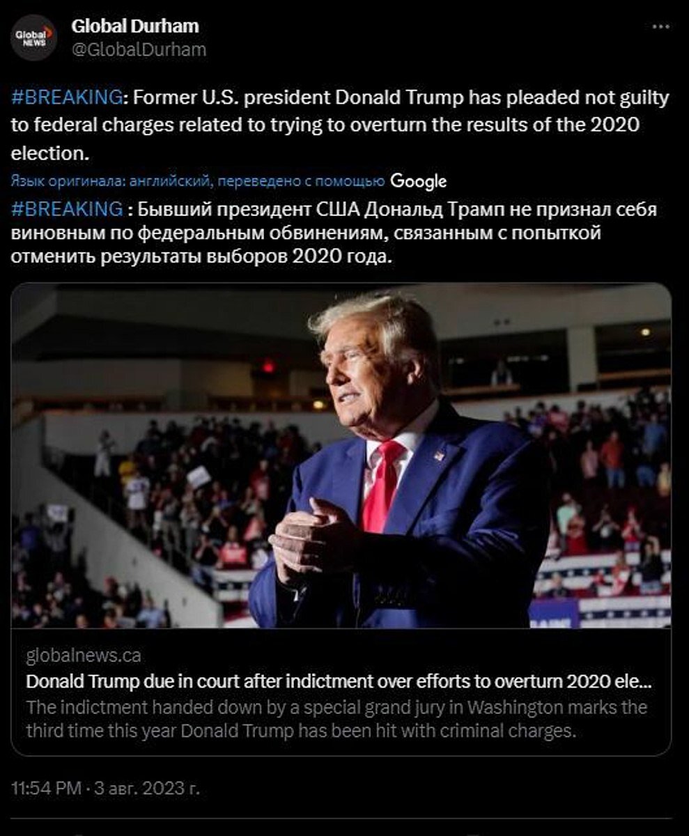 Однако Дональд Трамп дал обязательство о добровольной сдаче в руки правоохранителей, если суд признает его виновным. Экс-президента США обвиняют в попытке отменить итоги выборов в 2020 году.