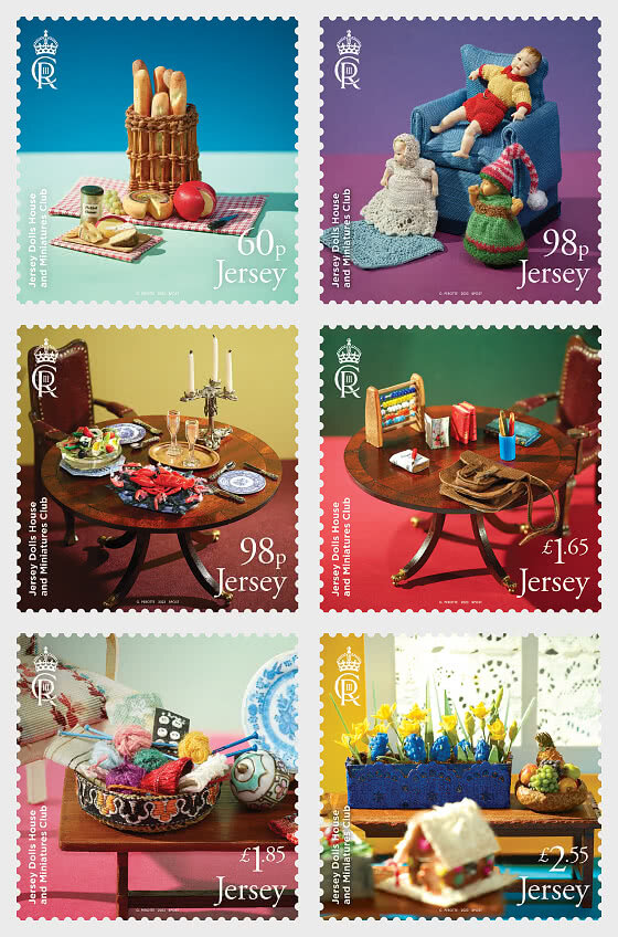 Коллекционеры марок хорошо знакомы с чудом и точностью крошечных, совершенных вещей. Миниатюрные предметы учат нас ценить больше с меньшими затратами, и это мнение, безусловно, разделяют члены Кукольного дома Джерси и Клуба миниатюр. В нашем последнем выпуске (шесть марок и сувенирный буклет) представлены веселые причудливые изделия, созданные членами местного клуба и воплощенные в миниатюрных сценах фотографом из Джерси Гленом Пероттом. Набор из шести марок из нашего выпуска «Jersey Dolls House and Miniatures Club». Шесть веселых миниатюрных сцен с предметами, созданными Клубом кукольных домов Джерси, были сфотографированы местным фотографом Гленом Пероттом.