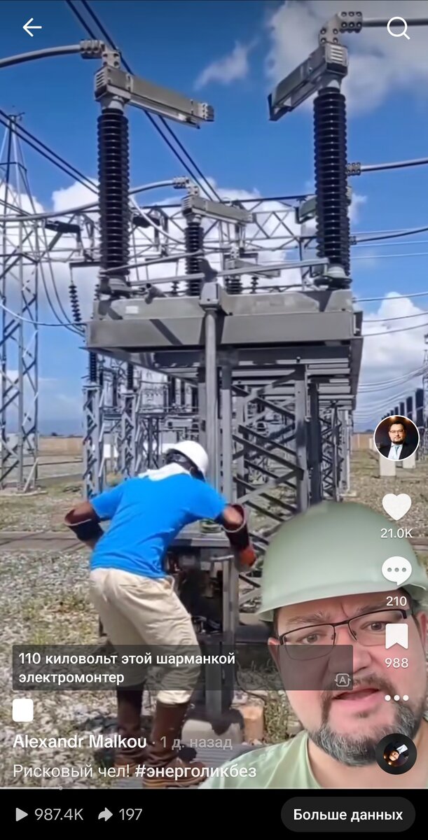 Обнаружен просто фатальный провал! Провал в знаниях части моей аудитории. И что самое обидное, не просто прохожих, а людей работающих в энергетике. И так. Вышло короткое видео на всех каналах моих. Как один мужчина крутит ручку ("шарманку") разъединителя, предположительно 110 кВ. Я усомнился в безопасности таких переключений потому что медленное расхождение/схождение ножей разъединителя это довольно опасная ситуация. Я высказал мнение про отсутствие защитного козырька и про более "безопасный прямой привод", трубой. И тут открылся "портал в ад"))). Первая волна умников начала писать про "это ж отделитель". Ребята,вы чего? На видео новая подстанциия, скорее всего иностранная. Отделители ставили только в СССР и перестали их ставить лет 40 назад. Напомню. Схема "Отделитель-Короткозамыкатель" применялась "для удешевления" подстанции и предполагала отсутствие выключателя на отпаечных подстанциях 110кВ. А отключалась подстанция от внешнего электроснабжения по высоковольтной ЛЭП хитрым