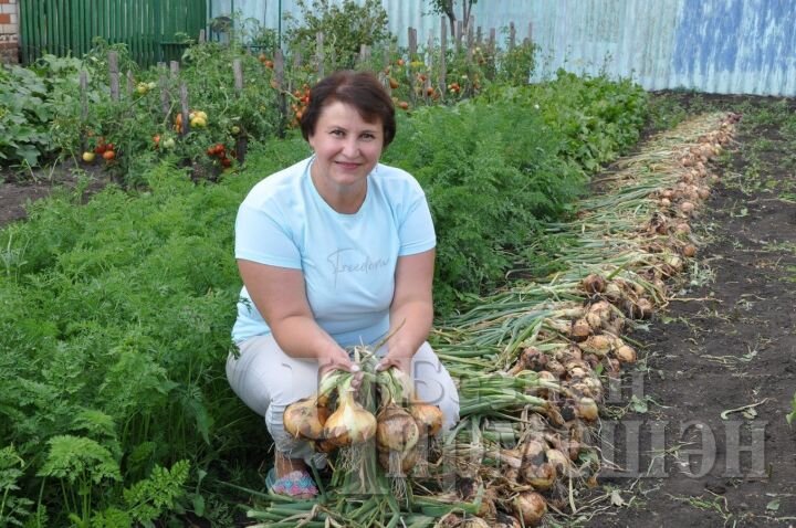 Вес некоторых луковиц, выращенных на огороде жителей Черемшана Марса и Миляуши Шайхутдиновых, достиг почти 400 граммов. - В этом году урожай овощей на огороде очень хороший. Правда, и в предыдущие годы он был неплохой, - сказала Миляуша Миннуровна. Сад у них не очень большой, но здесь хватило места для всего, есть и теплица. Хозяева уже убрали 60 кочанов ранней капусты, осталось лишь несколько штук. Стебли томатов согнулись от тяжести красных помидор, по темно-зеленым стеблям видно, что хозяева в этом году не останутся без и моркови, не успевают они собирать с грядок и огурцы. Придомовую территорию украшают красивые цветы. - Лук посадили на двух участках. Вот на этом он вырос особенно крупным. Видите, с одной стороны растет морковь, с другой - картофель, лук остается, как бы в тени. Видимо, и это повлияло, да и потом, в этом году осадков выпало мало, пришлось растения поливать. На этот участок вносим и навоз, - поделилась секретом хорошего урожая умелая хозяйка. – Семена лука мне ежег