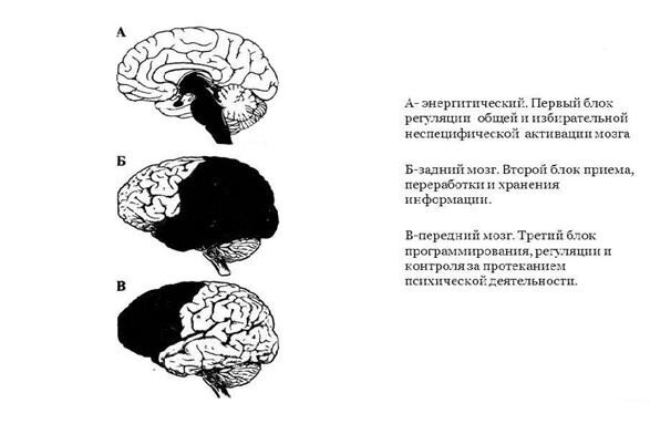 Лурия условно разделял головной мозг на три функциональных блока, связанные между собой.