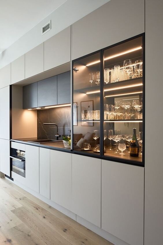 Среди всех предложенных моделей корпусной мебели от "Вардек", шкаф-витрина на кухне занимает особое место. Это не просто функциональный элемент, но и важный акцент в дизайне вашего пространства. Но как правильно заполнить его, чтобы он стал источником вдохновения, а не хаоса? Давайте разберемся. 1. КРАСОТА В ДЕТАЛЯХ Шкаф-витрина – это как показатель вашего внутреннего мира и вкуса. Заполнение витрины некрасивыми предметами и хламом создает ощущение беспорядка и дисгармонии. Но красиво организованный шкаф с хрустальными и стеклянными фужерами, посудой для торжественного ужина, свечами и подсвечниками превращает его в настоящее произведение искусства. 2. ЦВЕТОВАЯ ГАРМОНИЯ Старайтесь поддерживать цветовую гармонию при оформлении вашей витрины. Не забывайте о цветовой гамме вашей кухни и выбирайте посуду и аксессуары, которые дополнят общий дизайн, а не конфликтуют с ним.